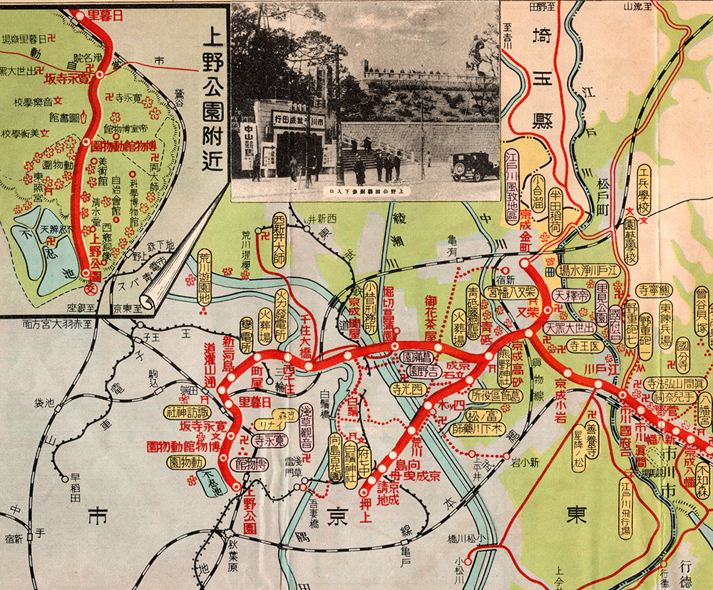 写真:「京成電車沿線案内」昭和11年~14年発行(一部分をトリミング)