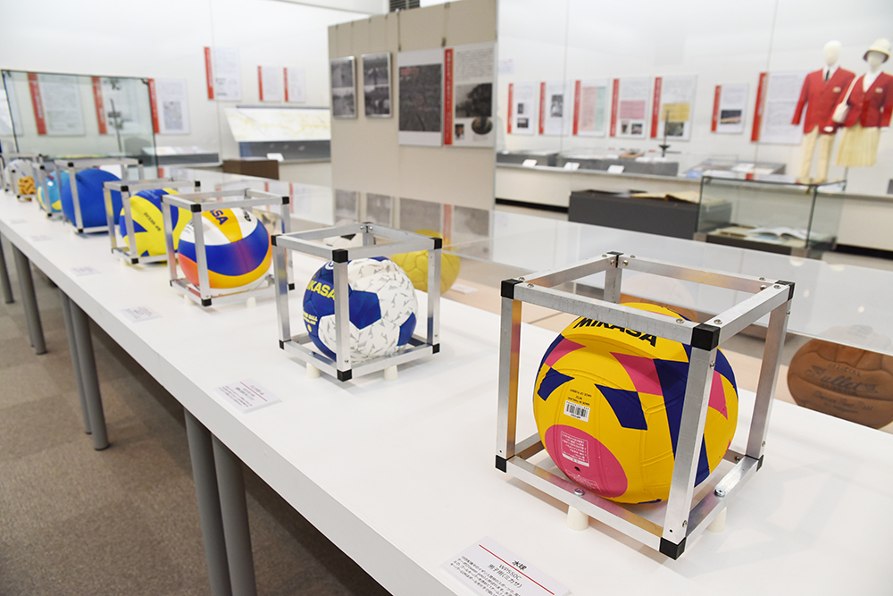 また会場では、秩父宮記念スポーツ博物館所蔵のボールも展示します。サッカーボールの公式球がどのように変遷したのかをご覧いただくとともに、さまざまな競技ボールに触れられる体験展示もご用意しています。